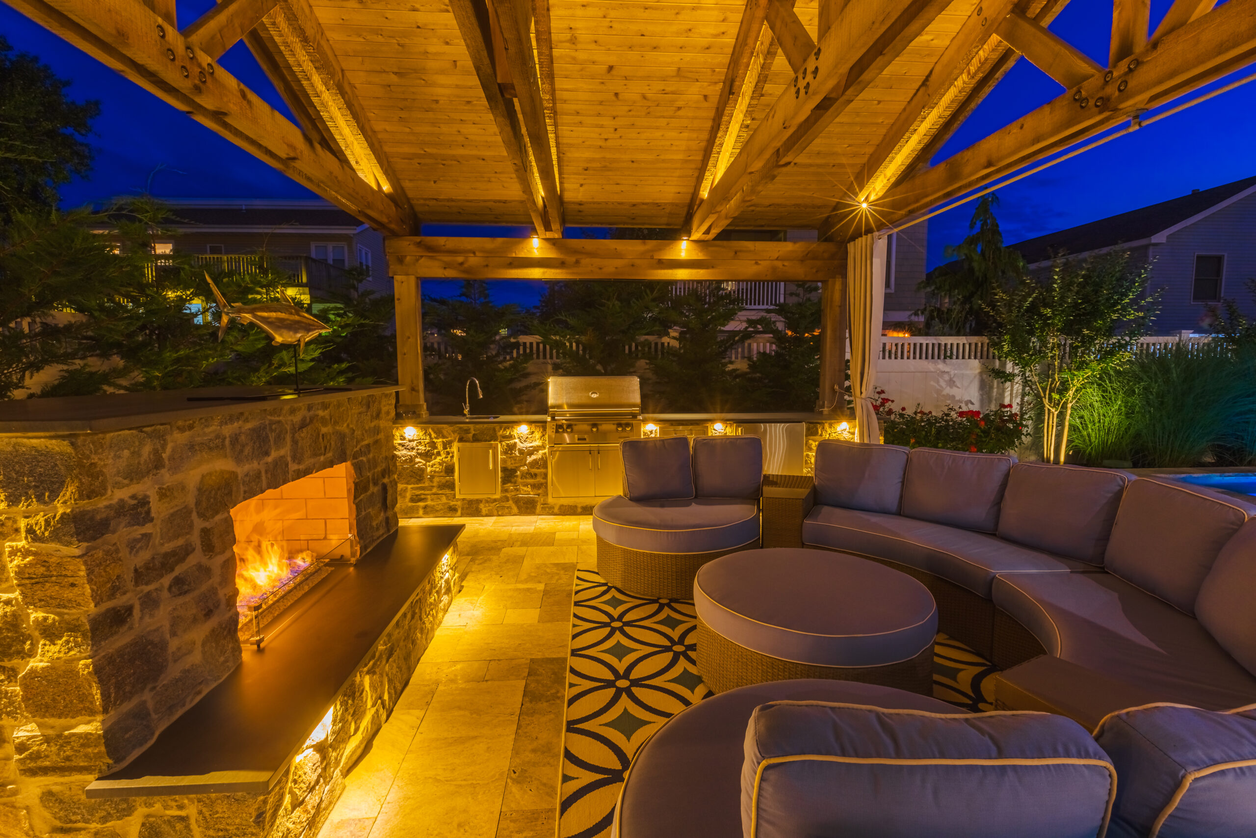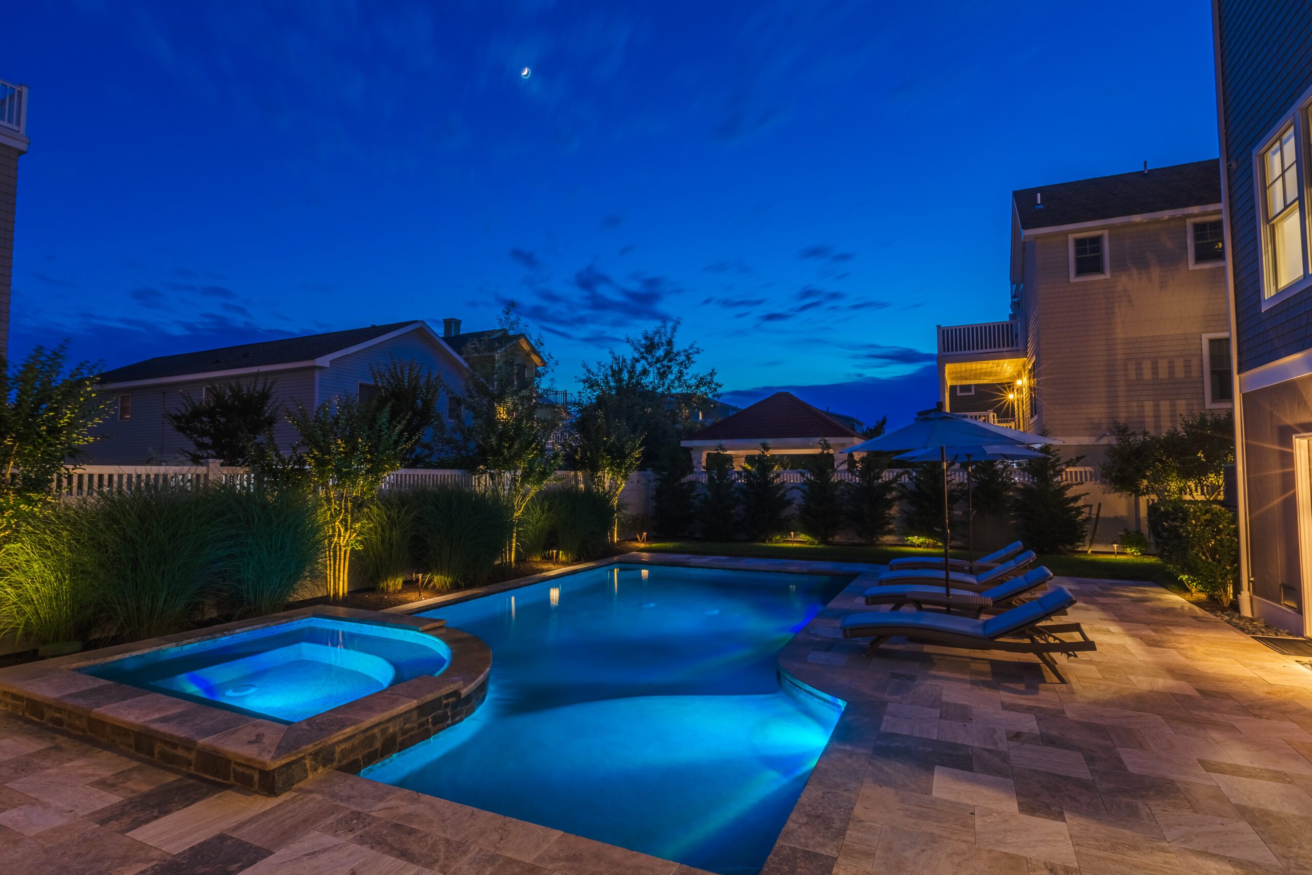 Professional outdoor lighting transforms your property after sunset, enhancing beauty, safety, and the overall experience of living outdoors on Long Beach Island. Our lighting designs highlight architectural features, illuminate pathways, and create warm, inviting spaces you can enjoy long after daylight fades.